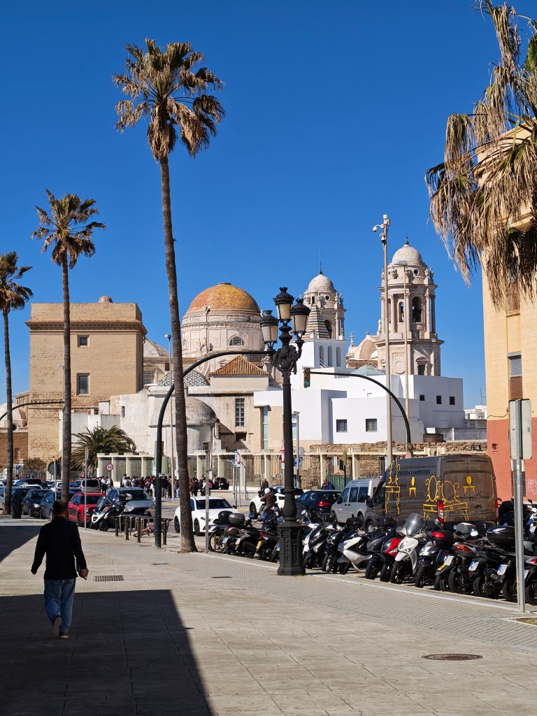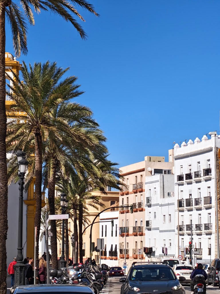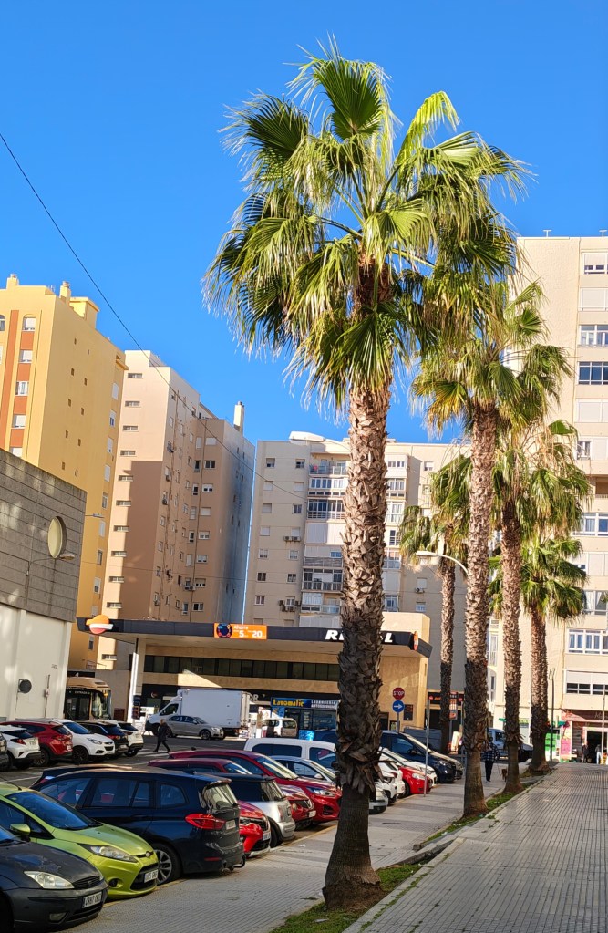 Buenos dias Cadiz. Fajnie z mieszkania wyjść i zobaczyć słoneczko , palmy po 3 miesiącach ponurej naszej zimy. Teperatura 15-17 stopni. Przyjemne ciepełko.