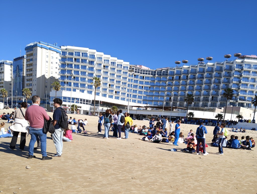 Dzieci chyba na jakąś przerwę ze szkoły wyszły , siedziały na plaży i wcinały drugie śniadanie. Żadne nie bawiło się komórką. Chyba jakiś zakaz mają, bo nie wierzę by z własnej woli to robiły. Przynajmniej spędzają czas w realnym świecie z rówieśnikami a nie w wirtualnym.