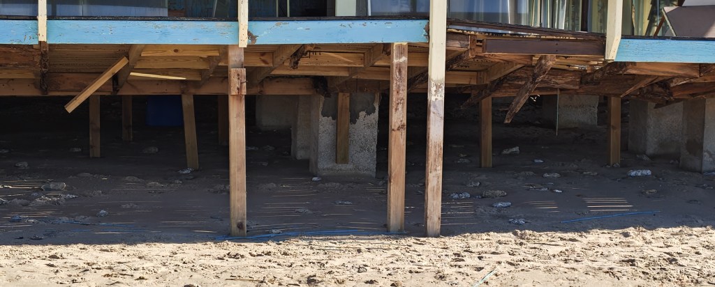 Widoczne skutki niedawnych wichur. Zniszczony „beach bar”.