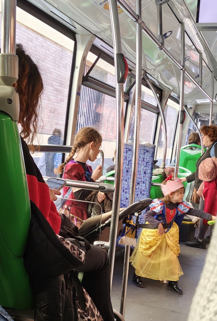 Wracamy w karnawałowym nastroju razem z innymi pasażerami. Często spotykaliśmy ludzi w bardzo fajnych przebraniach. Widać, że jara ich to święto.