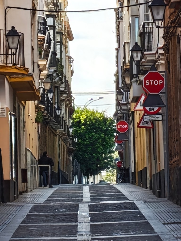 Na powitanie przechodzimy dawną bramą wjazdową do miasta Puerta de Tierra.Brama (Brama Lądowa) w dawnych murach miejskich w takim kształcie istnieje od XVIII wieku Natomiast wieża Puerta de Tierra została zbudowana w połowie XIX wieku i służyła jako wieża numer 57 na andaluzyjskiej linii telegraficznej , która przy dobrej pogodzie przesyłała wiadomości z Madrytu do Kadyksu w 2 godziny wooow!