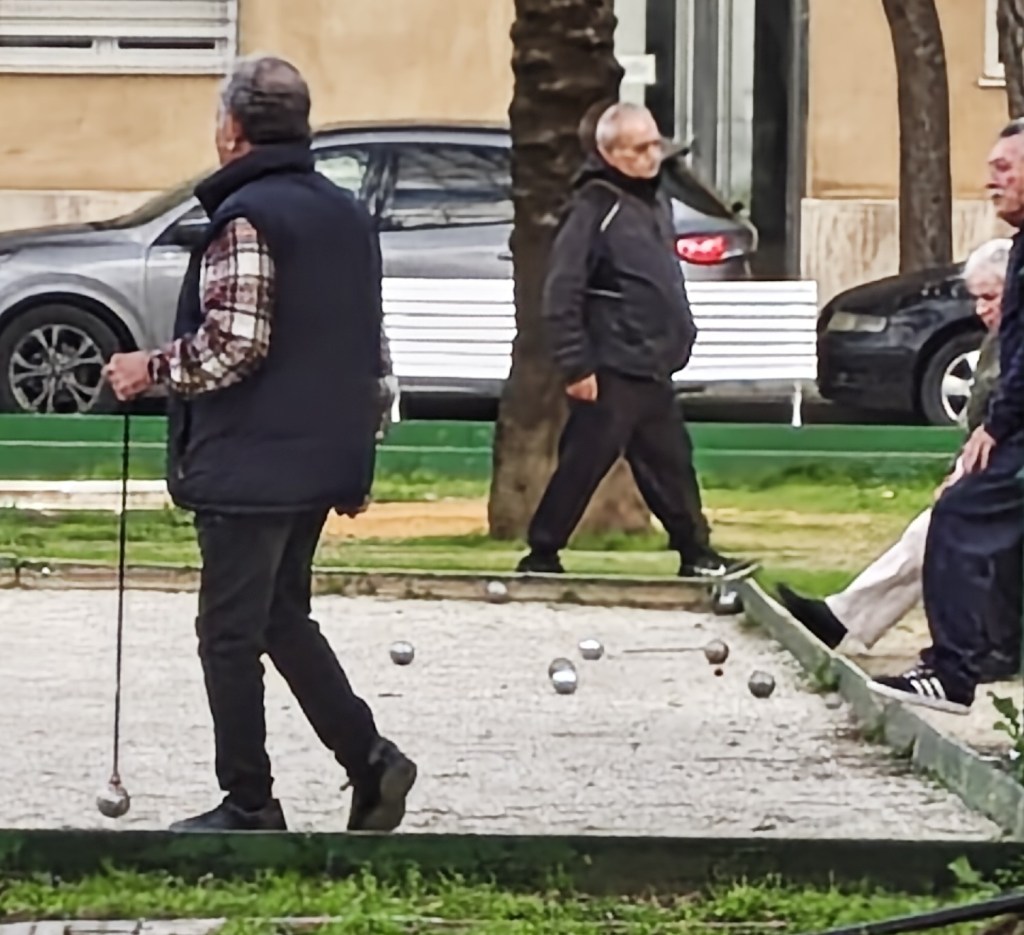 Dziadki grają w Petanque czyli gra w bule. Starożytni Grecy i Rzymianie już w to grali.