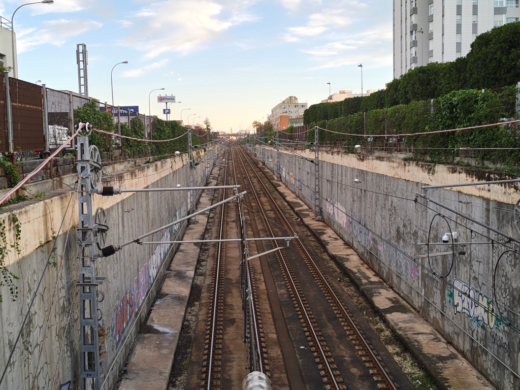 Nieopodal torowisko tramwajowo-kolejowe wychodzi na powierzchnię. Po tych samych torach kursują pociągi i „trambahia” (wymawiane po hiszpańsku „tramwaja „) do San Fernando i dalej do Chiclana.