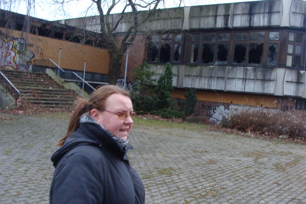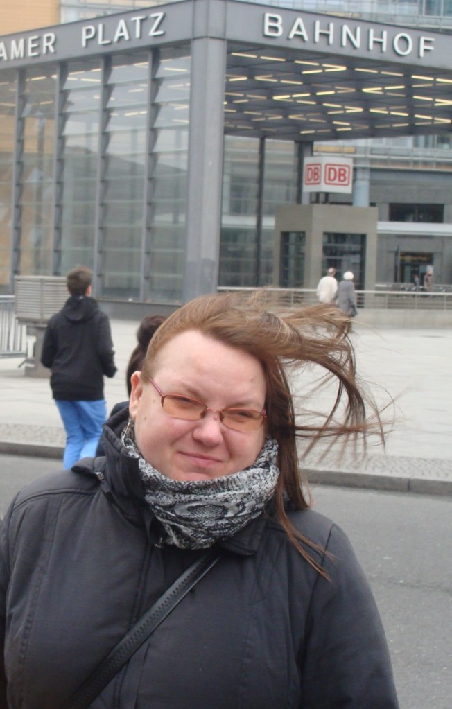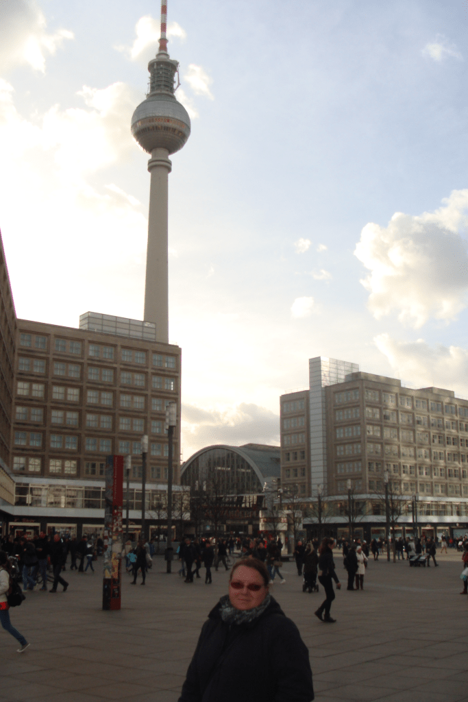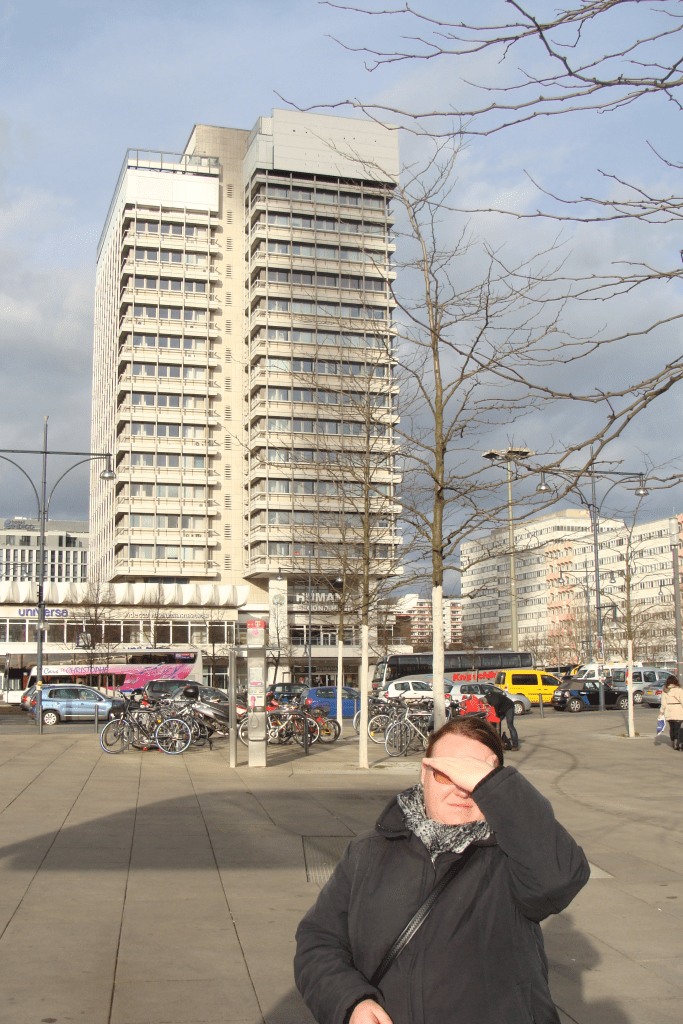 Kasia spogląda na wieżę telewizyjną, wzniesioną w 1969 roku przez władze wschodnich socjalistycznych Niemiec. Do dzisiaj , jest to najwyższy budynek w całych zjednoczonych Niemiec , wysoki na 368 metrów.