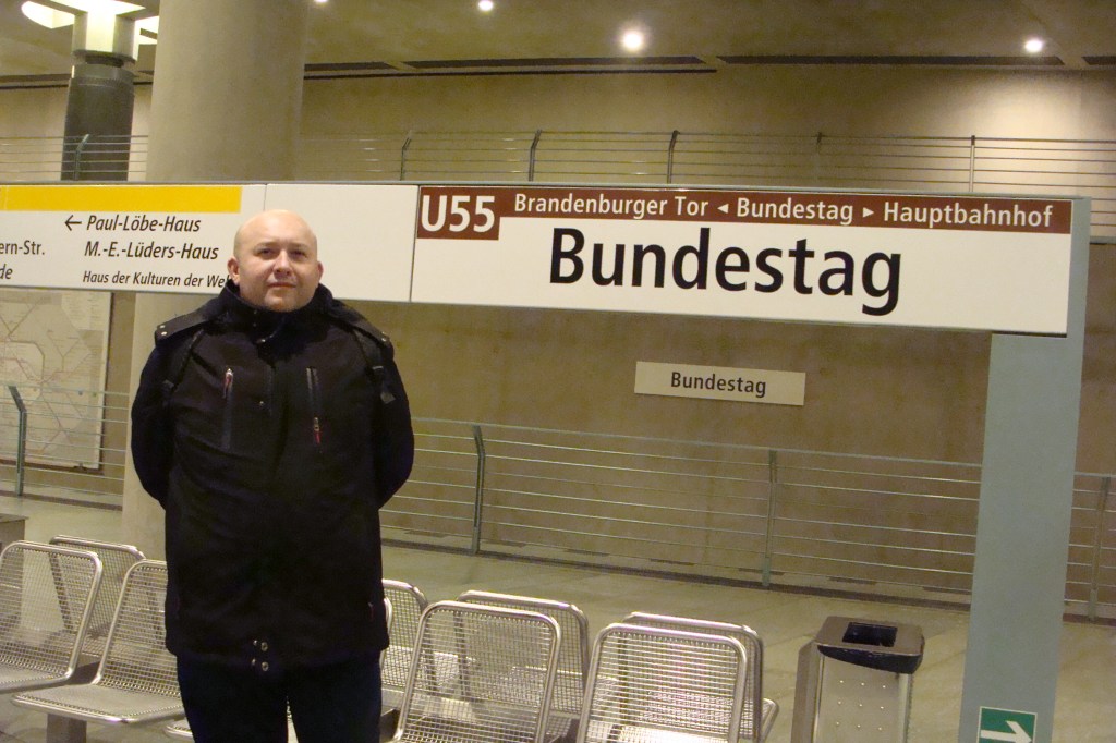 Pustawo w Bundestagu. Swoją drogą fajna była ta linia metra licząca 3 stacje. Maszynista znacznie więcej się nachodził zmieniając kierunek jazdy niż najeździł Obecnie już jej nie ma. Została włączona w 2020 roku do linii U5.