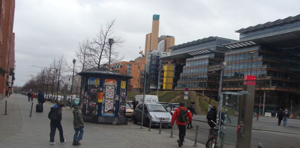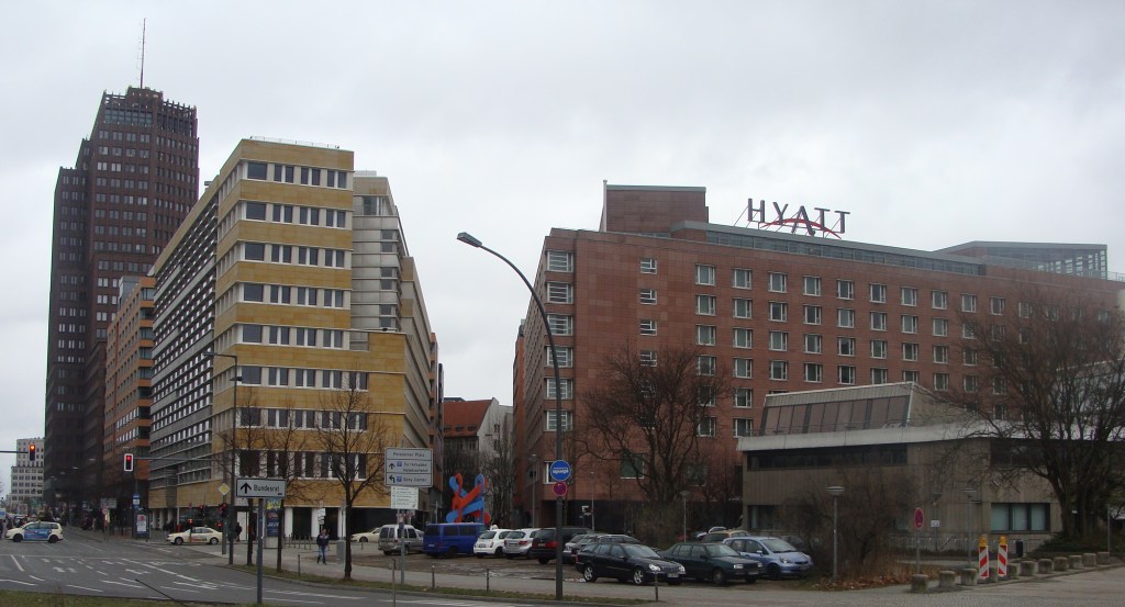 Potsdamerplatz czyli Plac Poczdamski.Zmieniał się na przestrzeni dziejów tak bardzo ,że w filmie „Niebo nad Berlinem” z 1987 roku turysta go szukał…i nie mógł znaleźć. Wszędzie były tylko chwasty i gruz.