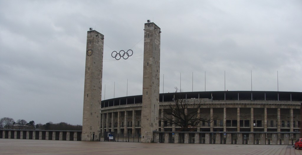 Stadion Olimpijski , na którym mecze piłkarskie cały czas gra Hertha Berlin i jest na nim rozgrywany co roku finałowy mecz o Puchar Niemiec. Tak naprawdę skansen zbudowany na Igrzyska Olimpijskie w 1936 roku. Wstęp do tego żyjącego na świeżym powietrzu muzeum w 2014 roku kosztował 15 czy 20 ojro. Podziękowałem z uśmiechem.