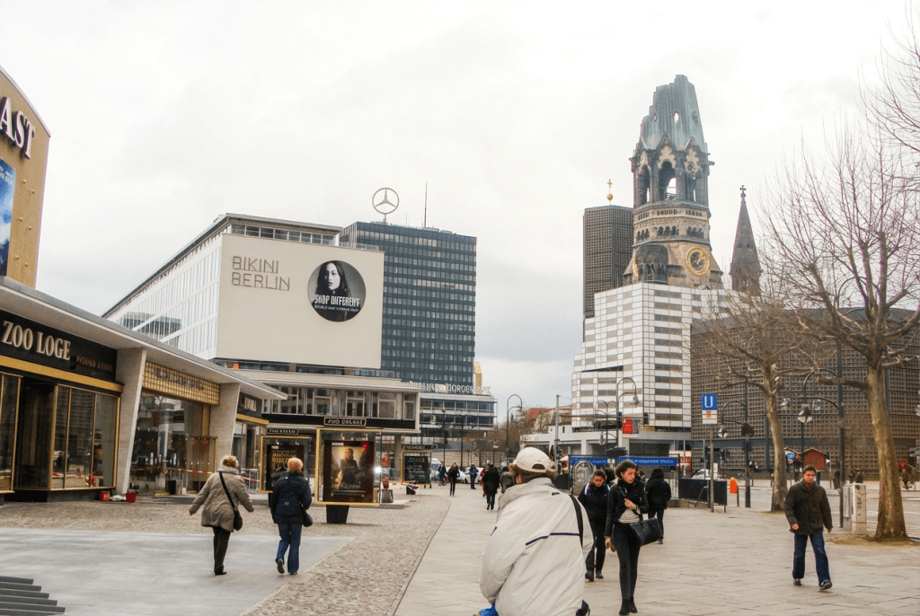 Po prawej Kościół Pamięci Cesarza Wilhelma I.